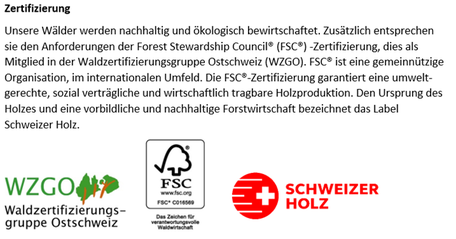 Achten Sie beim Kauf von Holz auf das Label «Schweizer Holz». Das garantiert Ihnen nachhaltig geschlagenes Holz mit kurzen Betriebswegen.